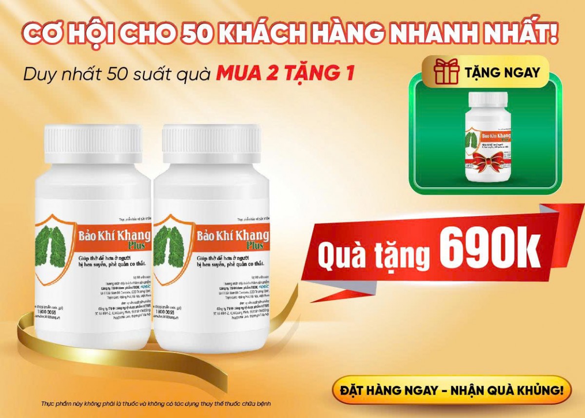 Cụ thể: Khi mua 2 hộp Bảo Khí Khang Plus (80 viên), bạn sẽ được TẶNG NGAY 1 hộp Bảo Khí Khang Plus (80 viên) trị giá 690.000Đ.