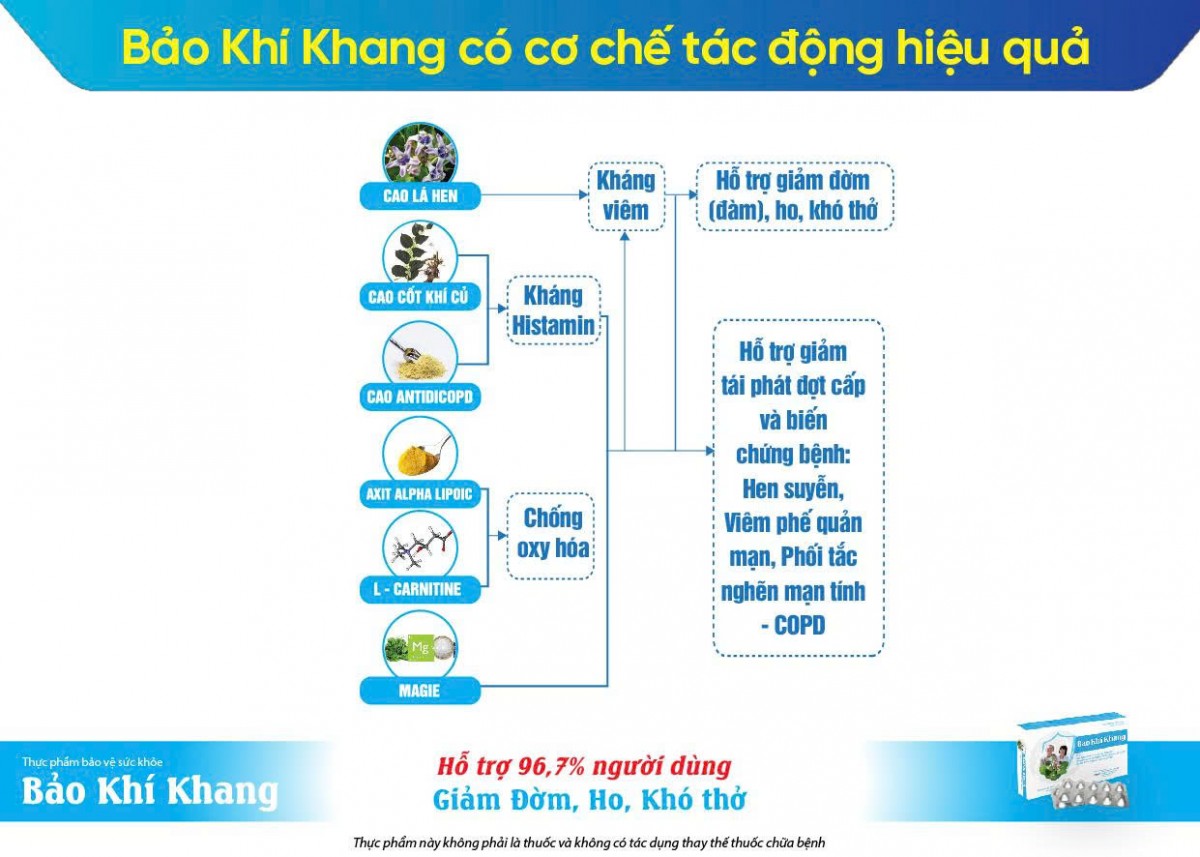 BẢO KHÍ KHANG - Thực phẩm bảo vệ sức khỏe tiên phong với thành phần CAO LÁ HEN kết hợp cùng các thảo dược quý, đã được chứng minh lâm sàng tại đại học Nam California hỗ trợ 96,7% người dùng giảm Đờm, Ho, Khó thở.
