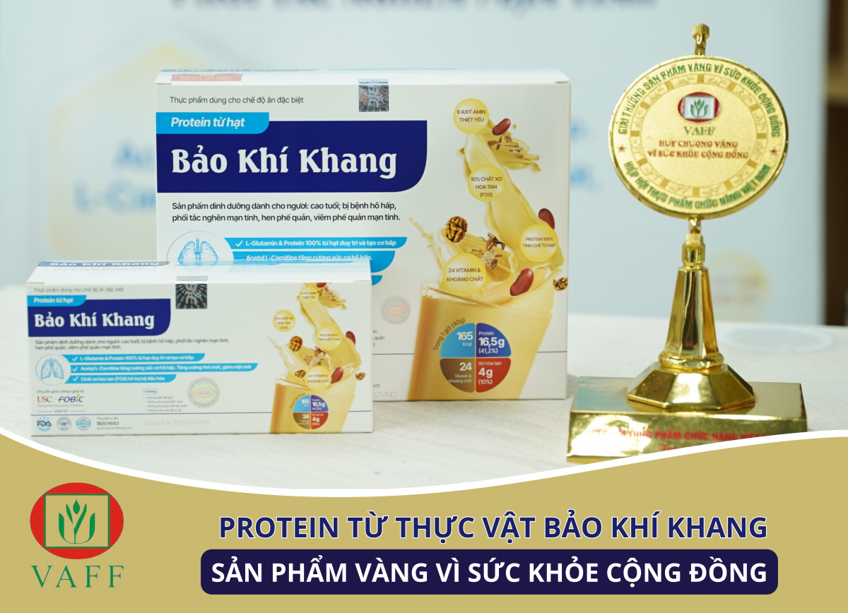 Tháng 01/2025, Protein từ thực vật Bảo Khí Khang vinh dự nhận giải thưởng "Sản phẩm vàng vì sức khỏe cộng đồng" do Hiệp hội Thực phẩm Chức năng Việt Nam (VAFF) tổ chức, nhằm tôn vinh các sản phẩm chăm sóc sức khỏe an toàn, hiệu quả và được người tiêu dùng tin cậy.